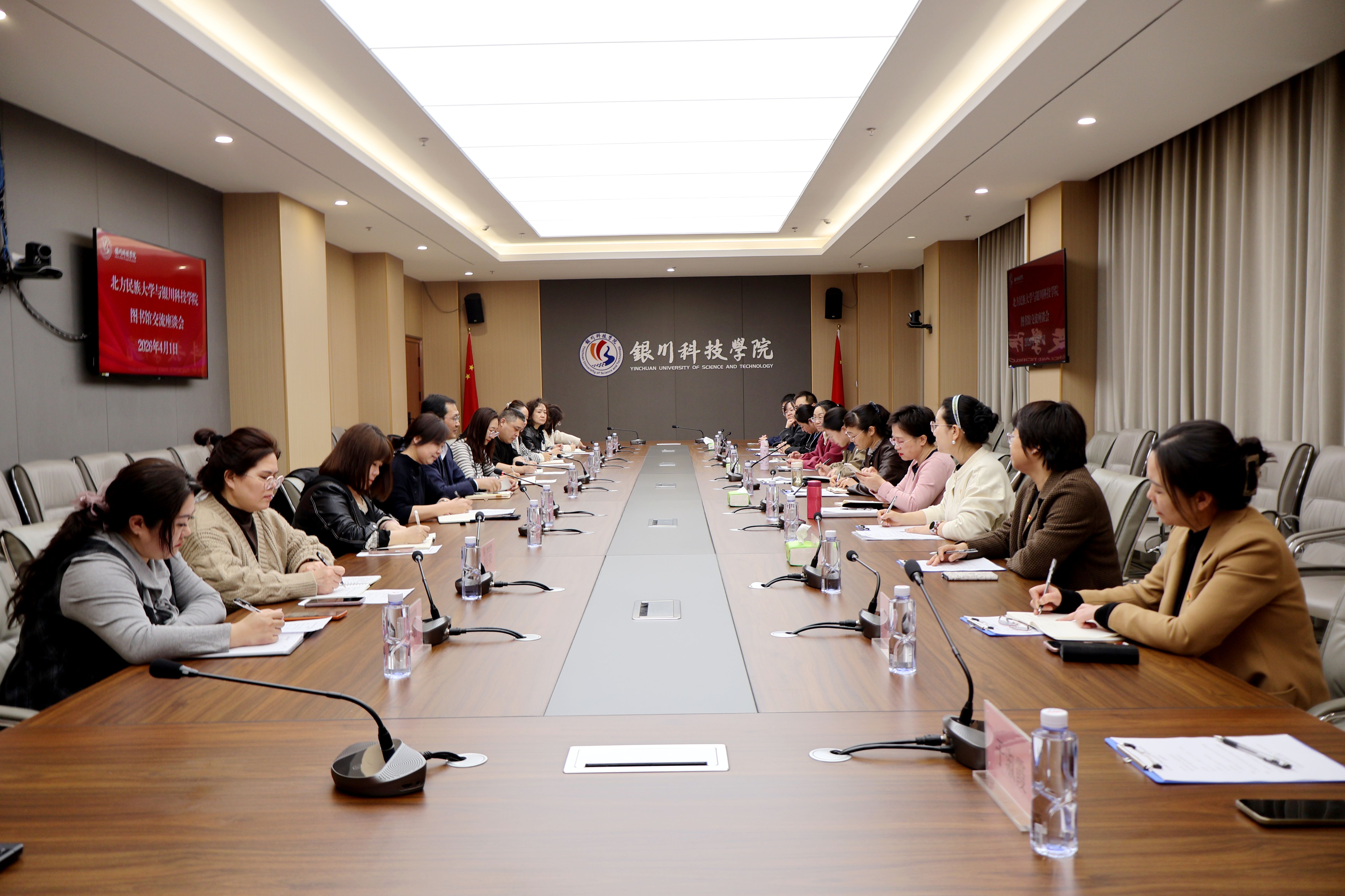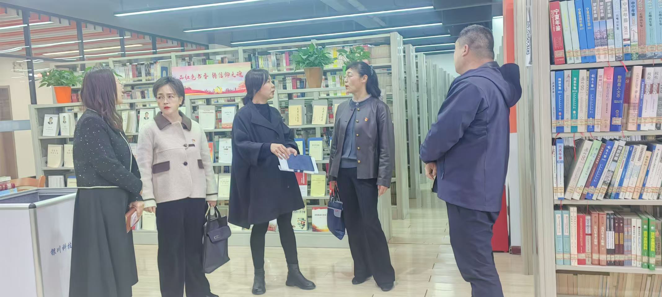为深入贯彻党的教育方针,充分发挥党建引领作用,深化校际图书馆合作交流,4月1日下午,在校党委统筹协调下,北方民族大学图书馆党总支书记、馆长包海燕一行11人莅临银川科技学院,开展以“党建引领聚合力,资源共享促发展”为主题的支部共建交流活动。银川科技学院第二直属党支部书记、图文信息中心主任付春燕及图书馆相关负责人、党员代表与到访团队齐聚一堂,围绕党建工作与图书馆业务发展深度融合展开交流,共探党建新思路,共谋发展新路径。